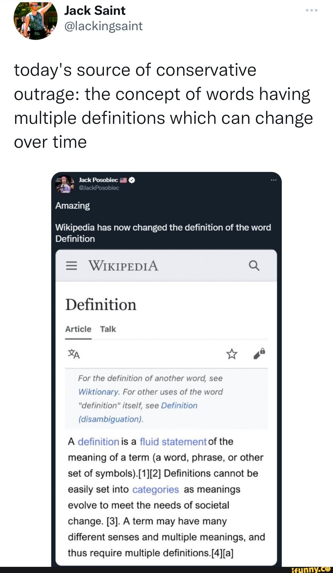 Jack Saint Lackingsaint Today S Source Of Conservative Outrage The Concept Of Words Having Multiple Definitions Which